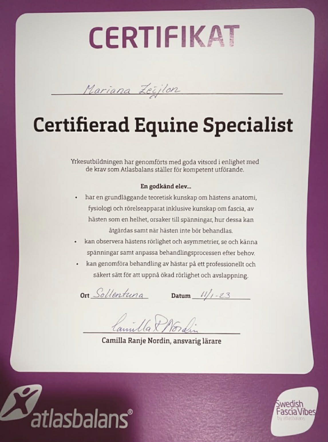 •Certifierad Hästterapaut - Equicare