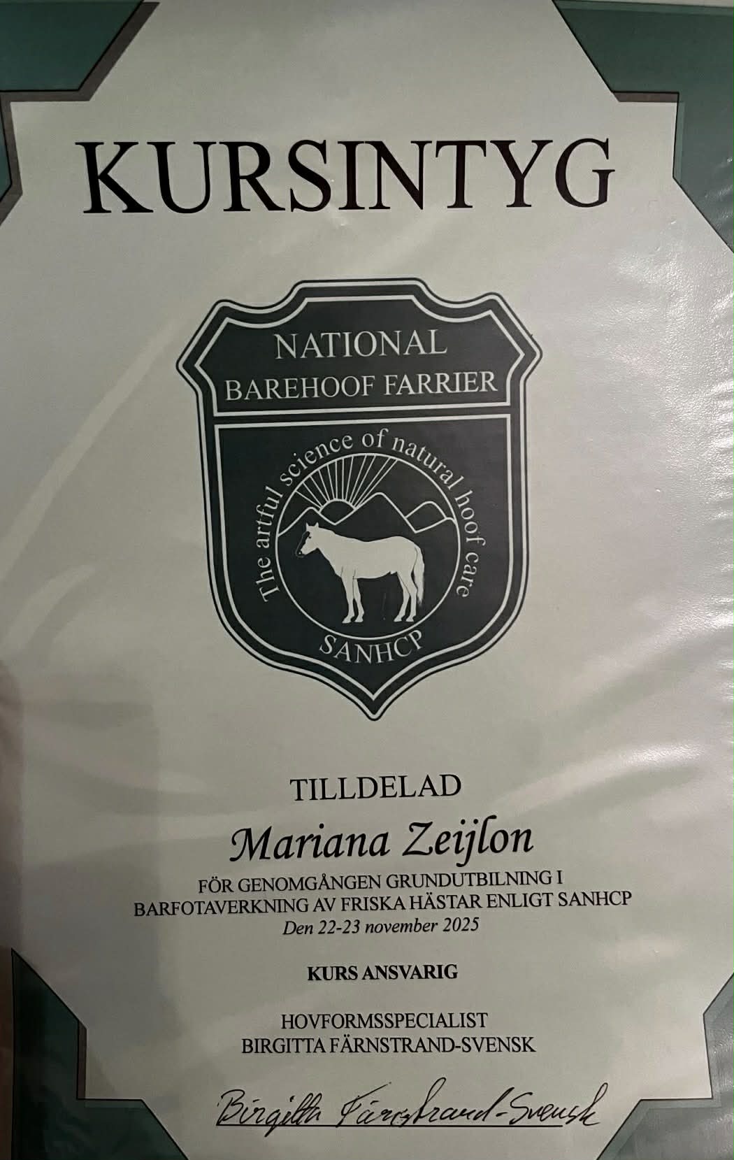 Den nyfikenheten har lett mig till att vidareutbilda mig inom friskvård/rehab/prehab för häst, utrustning, foder och allt där till. Jag arbetar alltid med ett helhetsperspektiv, där behandling, utrustning, foder och träning samverkar för att skapa en mer hållbar och välmående häst. För mig handlar arbetet inte bara om behandling, utan om att hjälpa häst och ägare att hitta tillbaka till en bättre balans i vardagen. Att se en häst slappna av, röra sig bättre eller återfå sin arbetsglädje är det som driver mig varje dag.